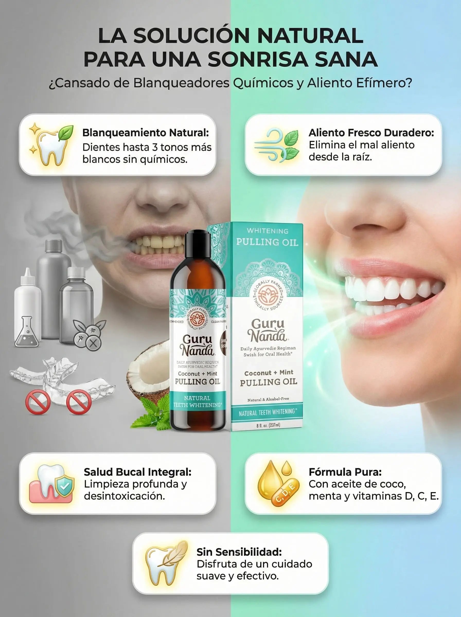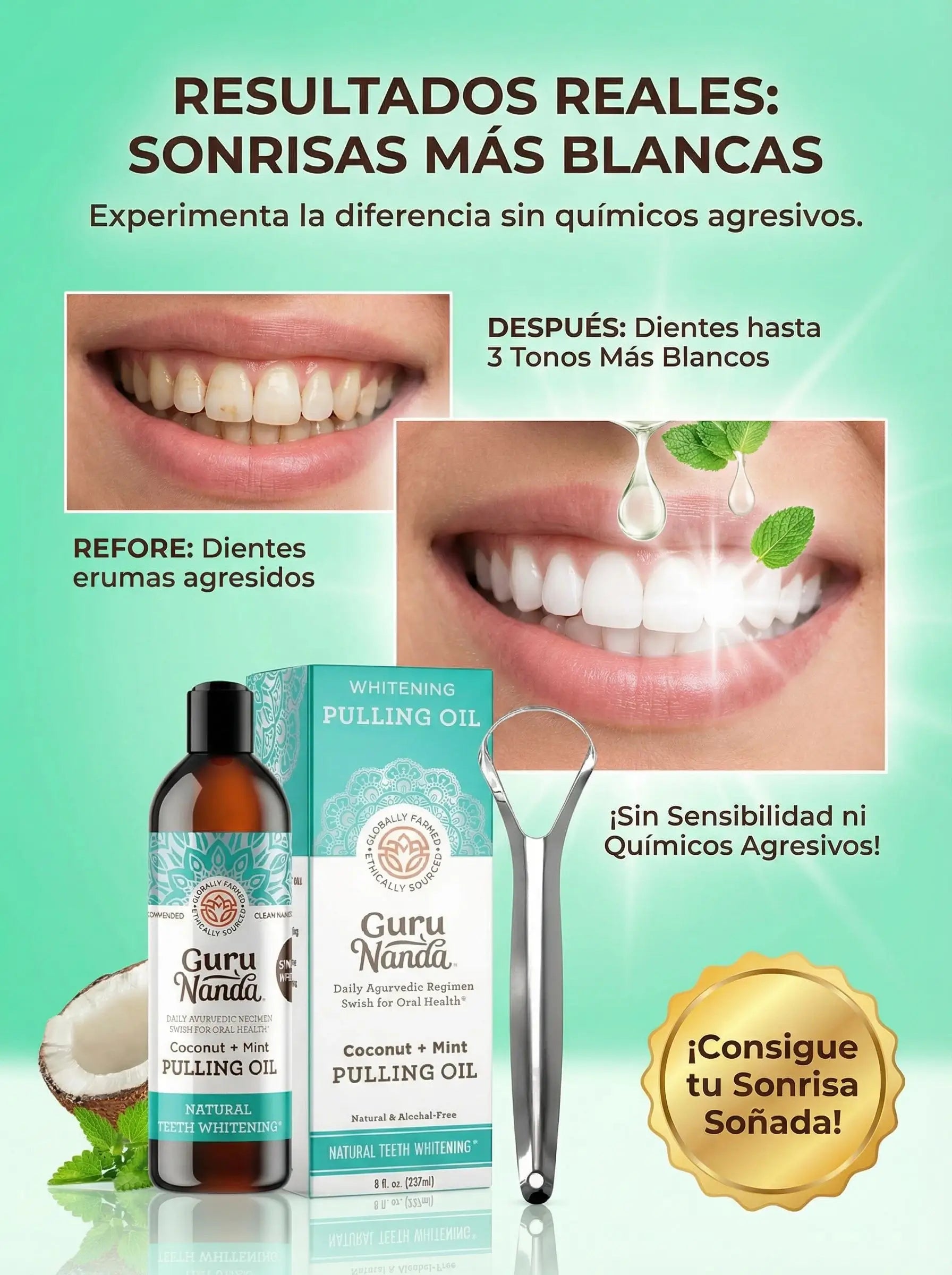 tengo 34 años y pues a esta edad ya poco apoco los dientes se van poniendo amarillos o no se sies por mi mal cuidado , pero usando ya este aceite como por 10 o 15 dias me ha resultado bueno y su sabor es rico