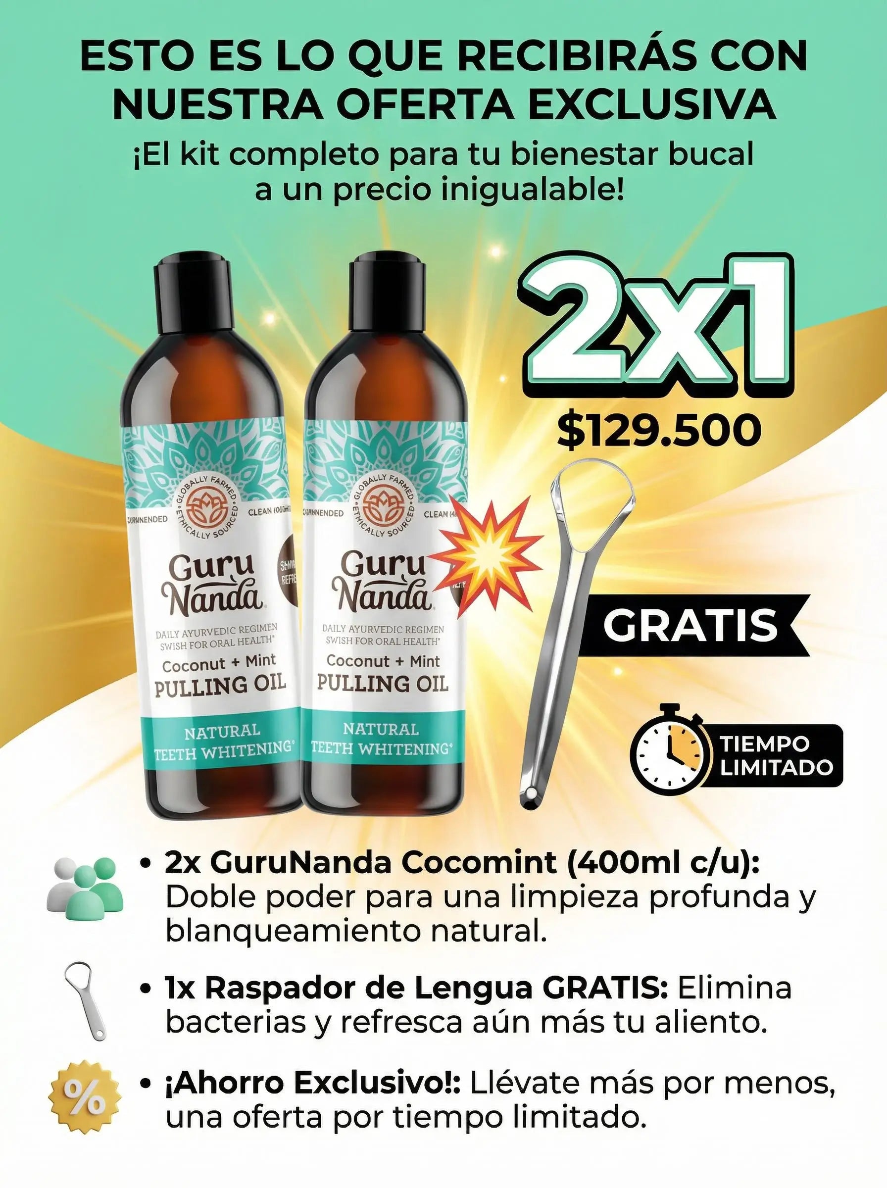 GURUNANDA ENJUAGUE BUCAL + RASPADOR DE LENGUA GRATIS